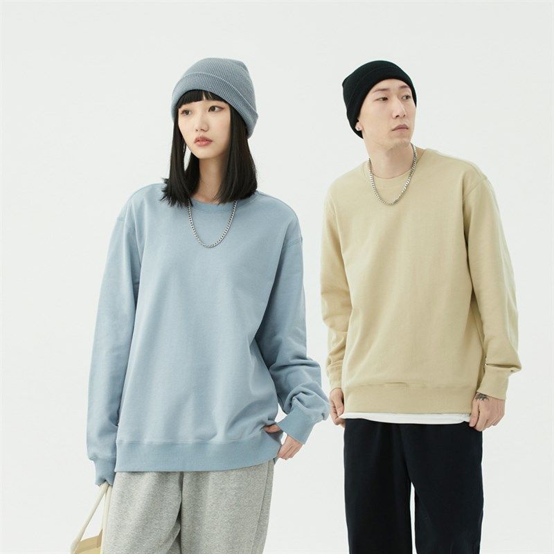 纯白色500g重磅圆领卫衣男女秋冬季加绒加厚套头宽松美式上衣长袖