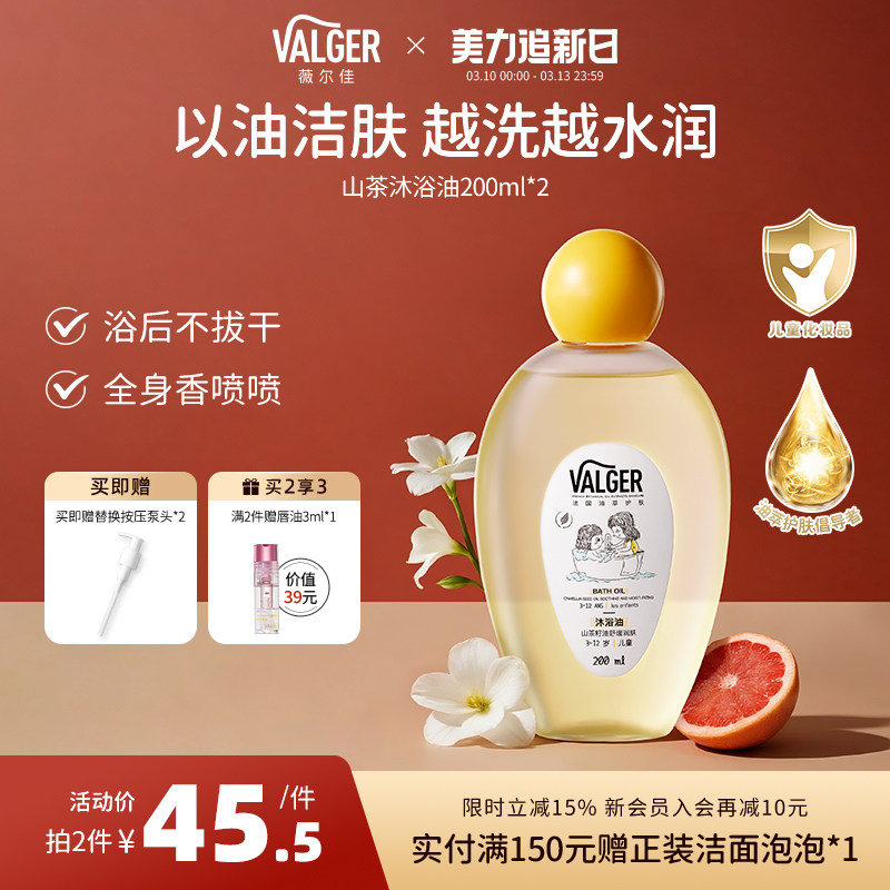 VALGER薇尔佳儿童沐浴油洗护二合一宝宝洗澡专用山茶泡泡沐浴露