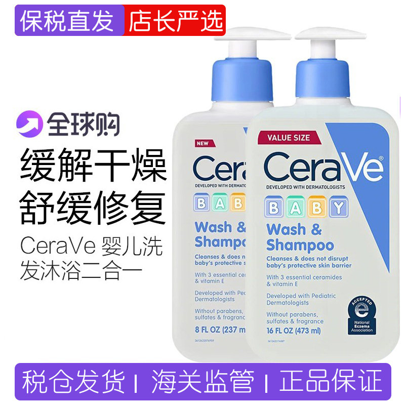 【保税】适乐肤CeraVe婴儿温和无泪洗发沐浴二合一473ml宝宝专用