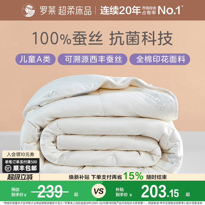 罗莱家纺100%桑蚕丝被芯长丝黄金蚕丝被结婚陪嫁喜被二合一被四季