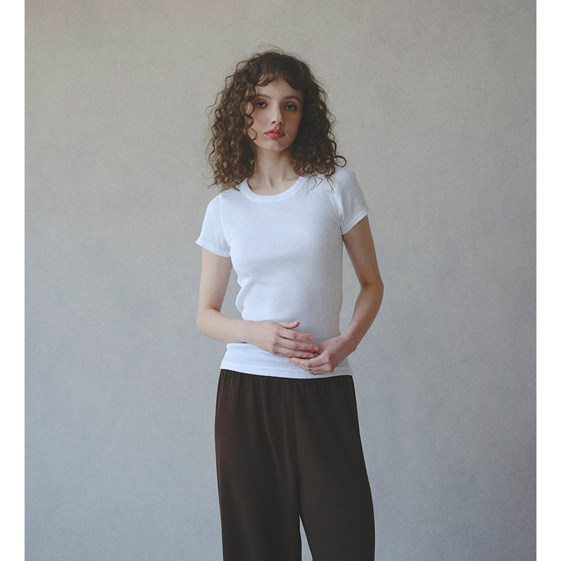 MollyRosa正肩螺纹纯棉短袖T恤女纯色百搭修身打底衫内搭显瘦