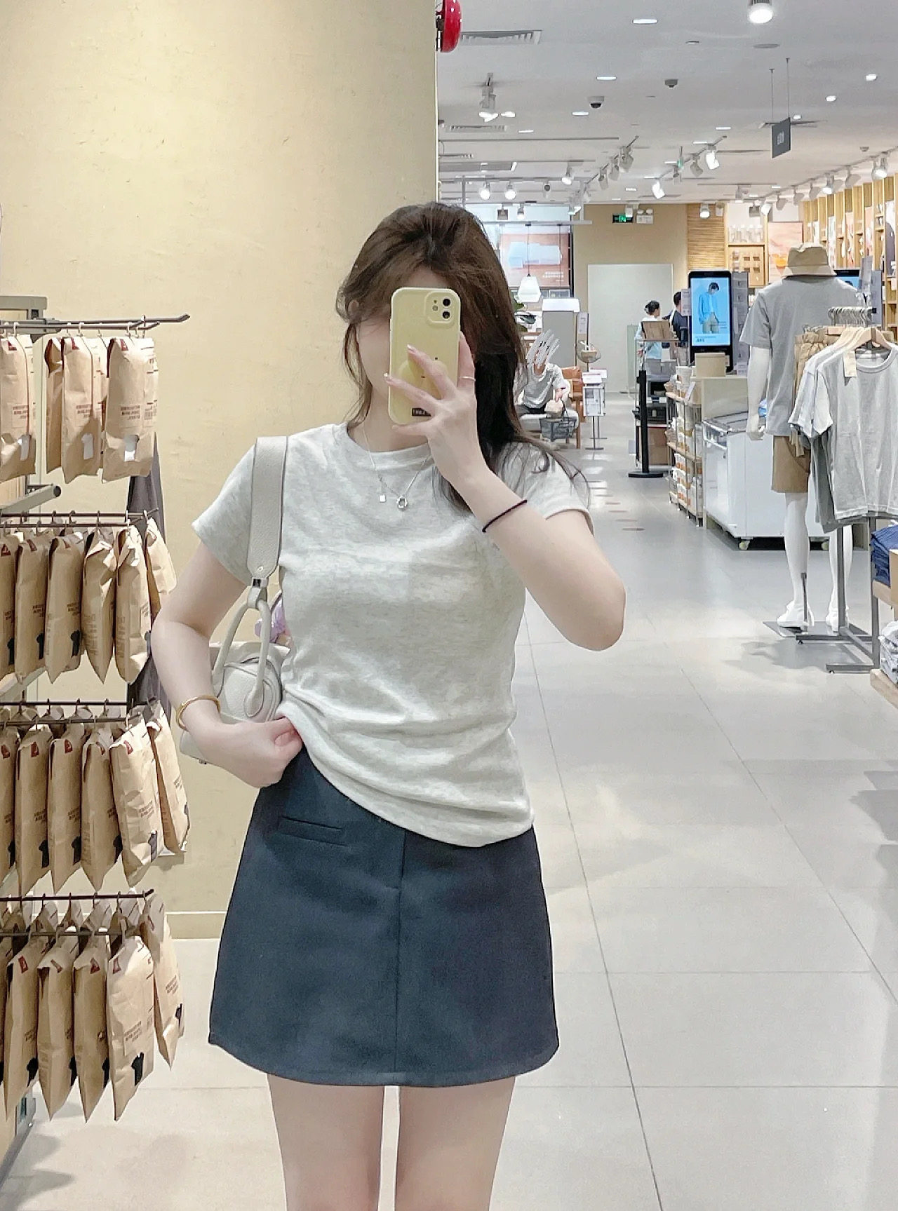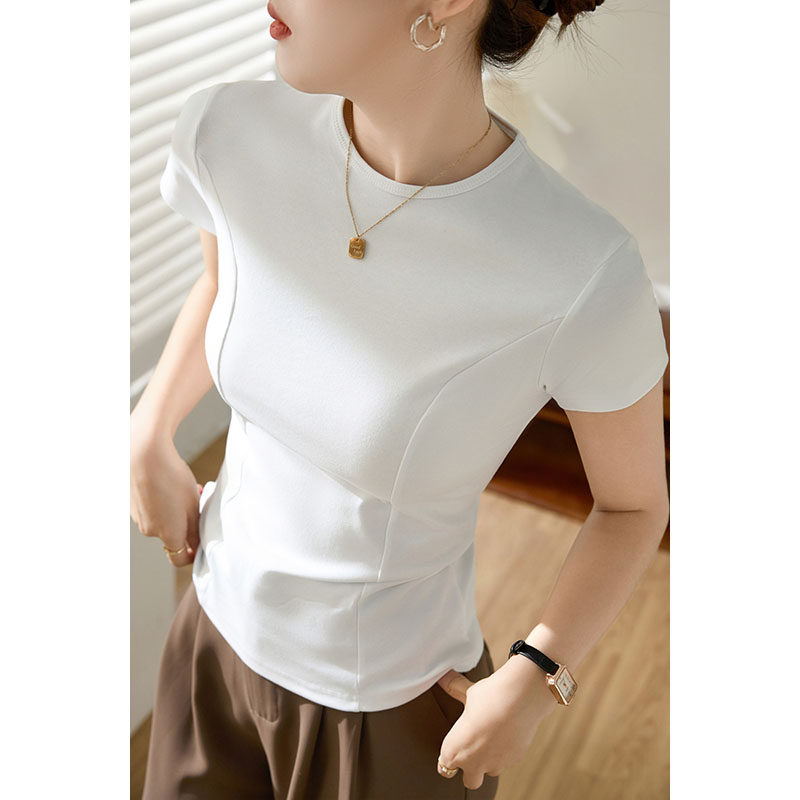 歌倍尚短袖t恤女夏季新款纯色修身内搭汗衫圆领纯棉紧身体恤上衣