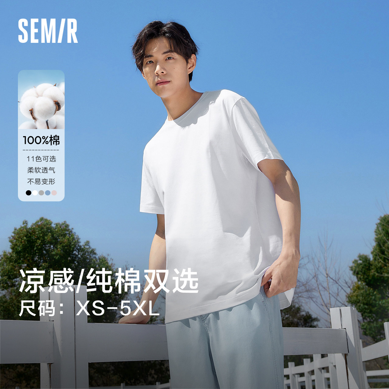 森马短袖T恤男纯棉打底衫修身2025新款纯色内搭上衣女简约百搭白t