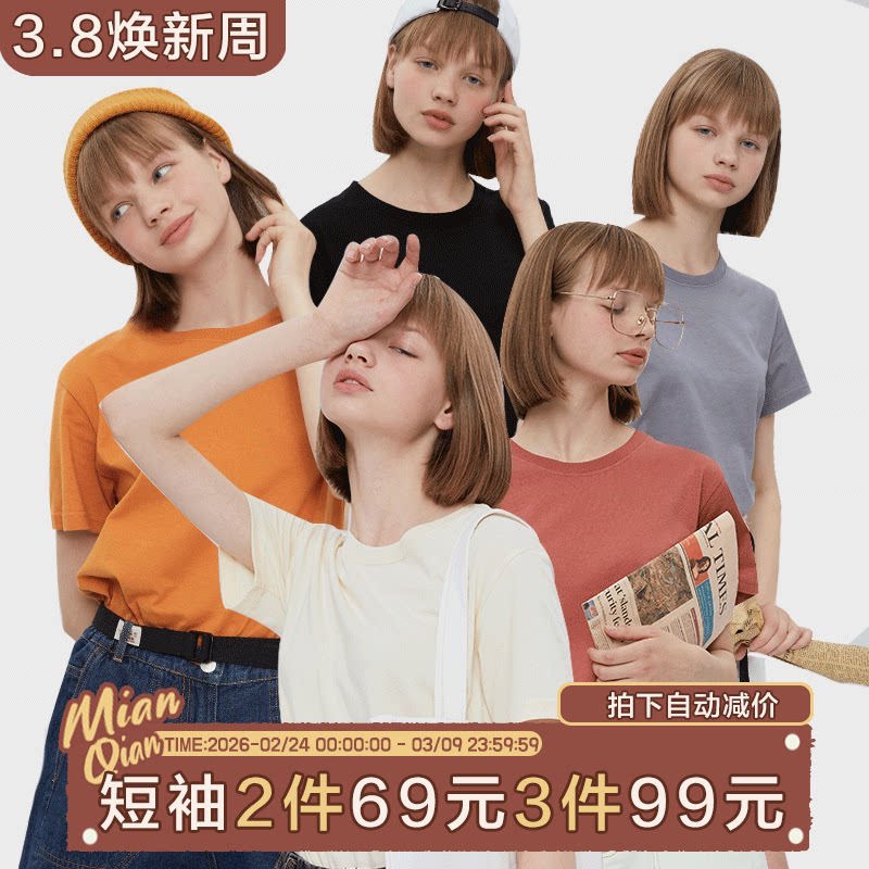 3MER哦哦三妹正肩修身百搭纯色短袖t恤女2026春装新款纯棉上衣小t