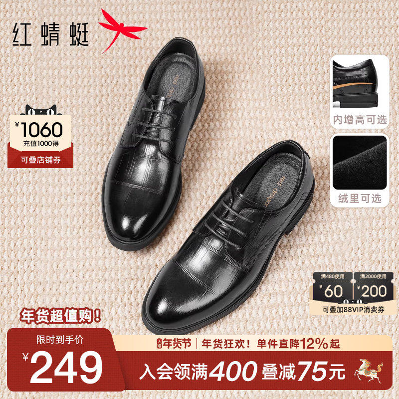 红蜻蜓男鞋商务正装皮鞋男真皮增高德比鞋子年轻人结婚新郎鞋男士