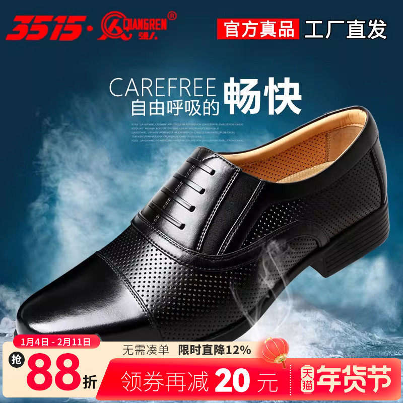 3515强人夏季真皮皮鞋男透气网眼商务正装皮凉鞋尖头英伦皮鞋男鞋