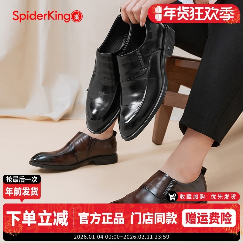 蜘蛛王真皮皮鞋男2025年春秋季商务正装皮鞋英伦尖头软底男士婚鞋