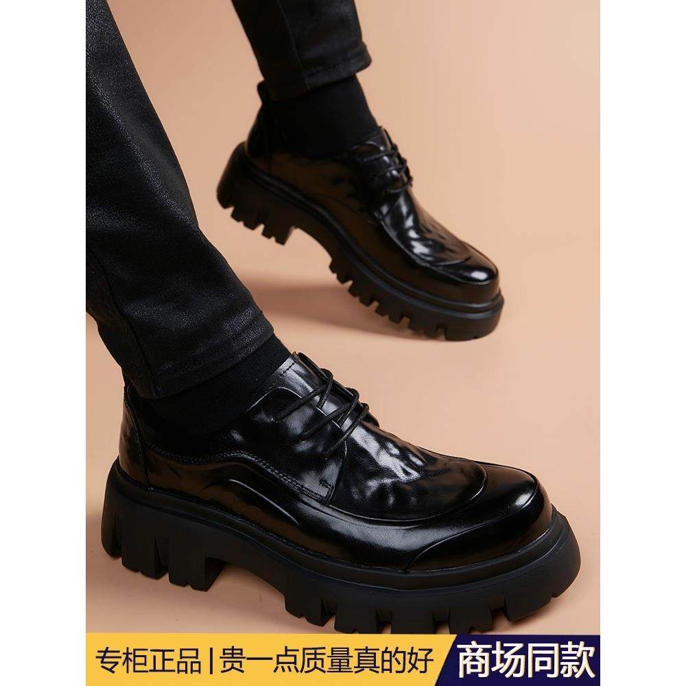 正品真皮皮鞋男士商务正装韩版英伦休闲系带春秋季厚底男鞋子透气
