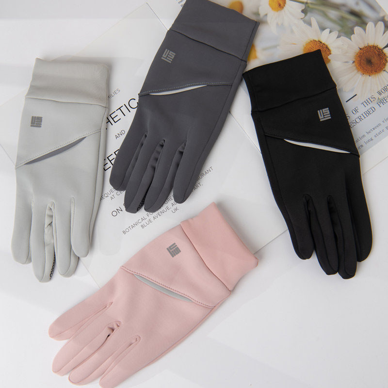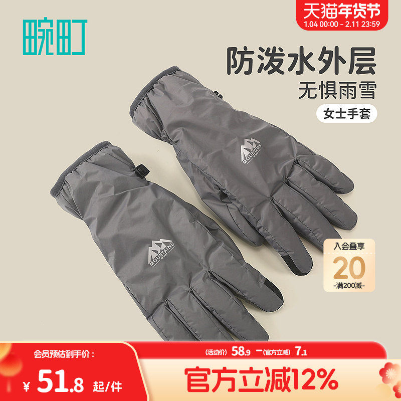 畹町女士户外手套秋冬轻薄防泼水指尖可触屏薄绒五指保暖运动手套