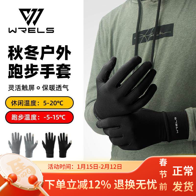 WRELS秋冬保暖运动手套户外跑步骑行抓绒防寒触屏男女绒内衬手套