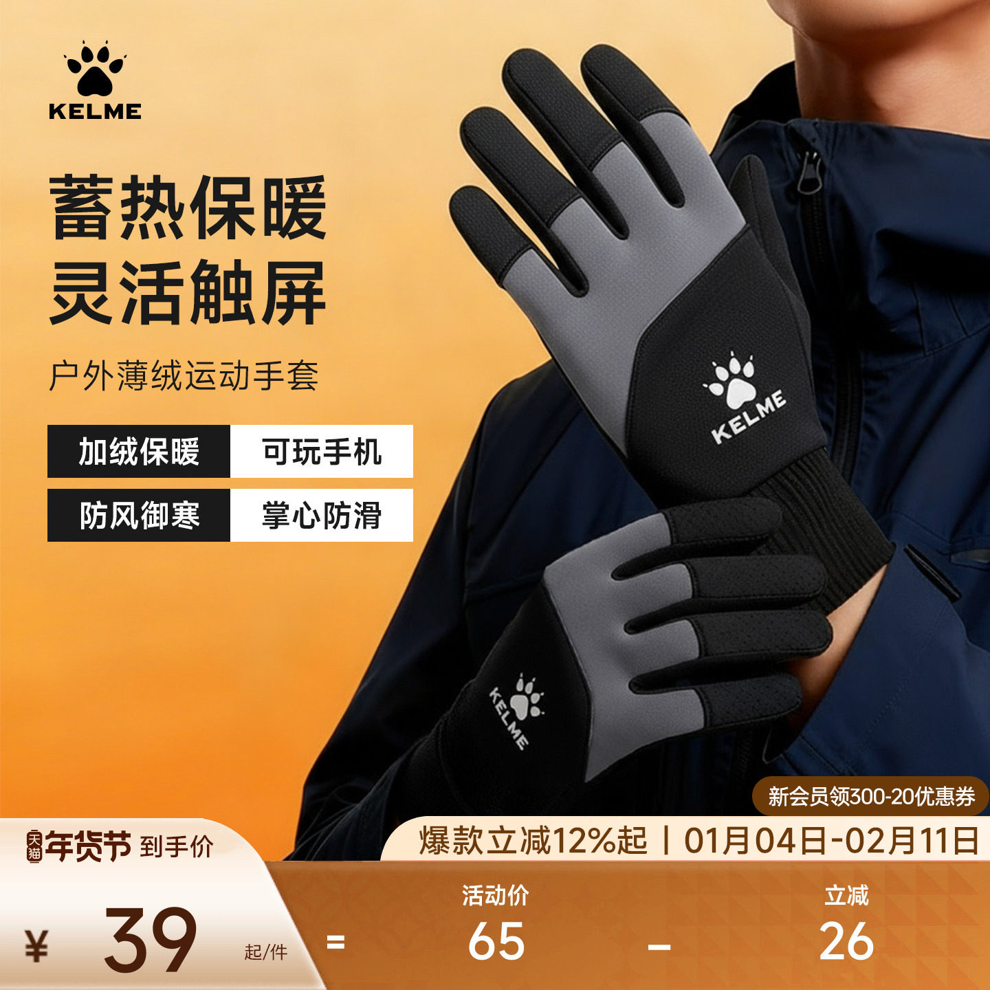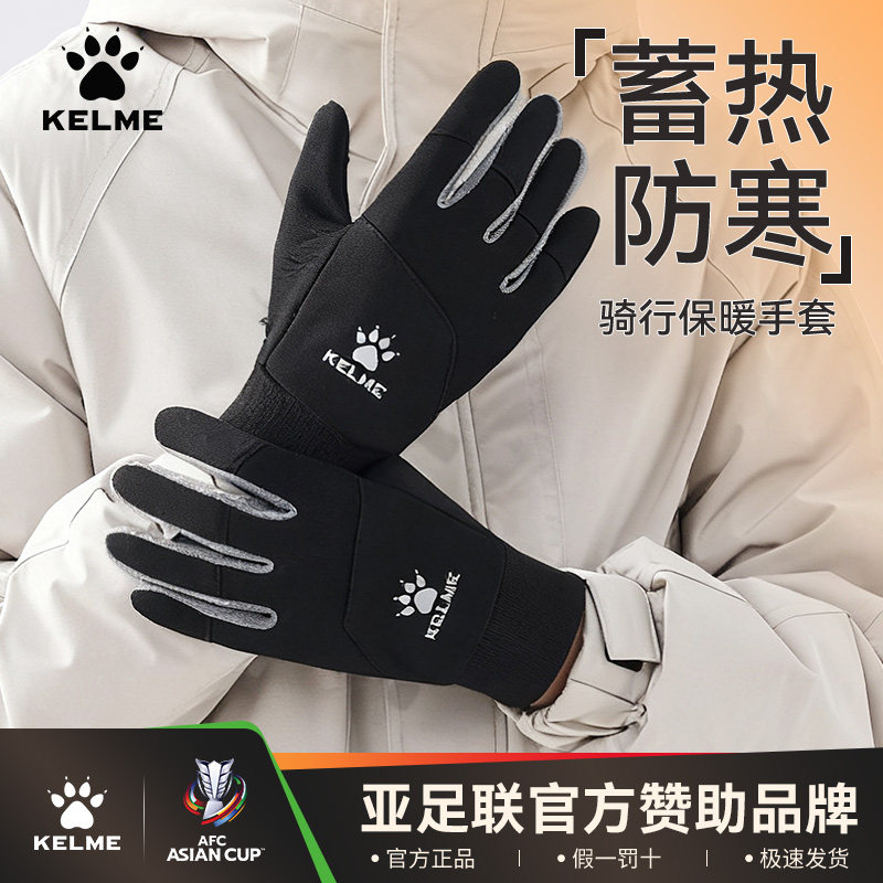 KELME卡尔美防风成人加绒保暖运动手套儿童足球跑步触屏骑行手套
