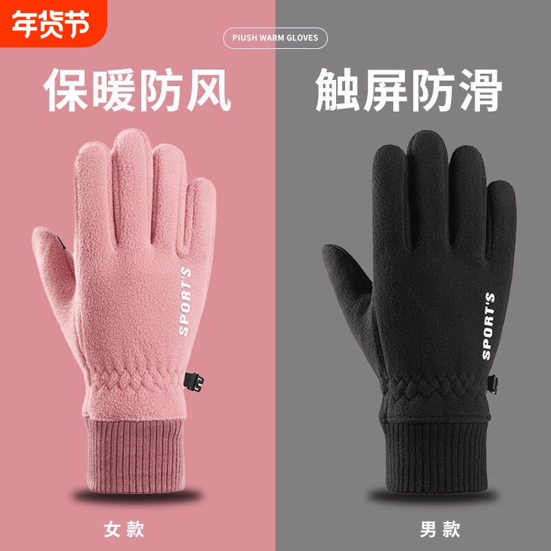 保暖手套女秋冬触屏加厚户外骑行开车德绒防风运动手套防冻男女款