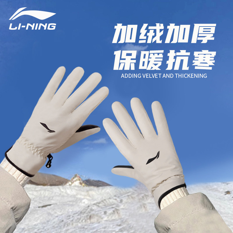 李宁手套 2025冬季新品男女同款时尚加绒保暖运动手套ASGV017