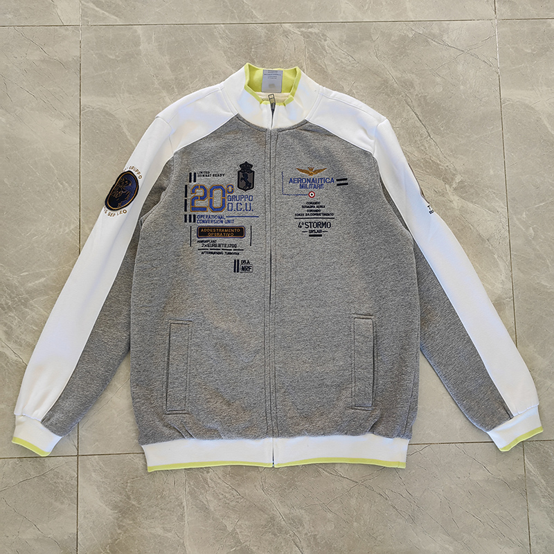 2023秋冬男装卫衣加厚拉链开衫立领修身纯棉空军一号AM飞机刺绣