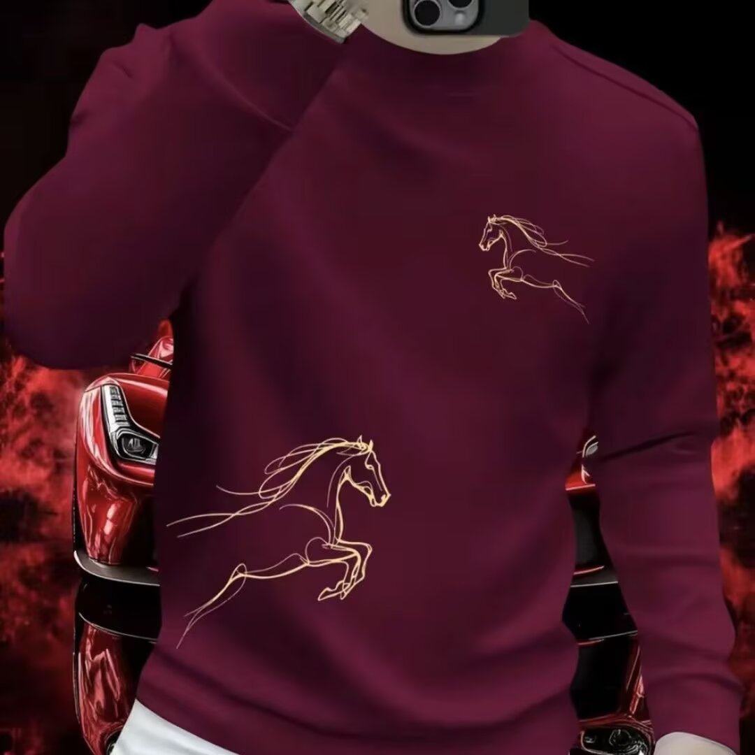 潮牌酒红色男装卫衣加厚加绒 2026马年本命年红色战袍长袖T恤衣服
