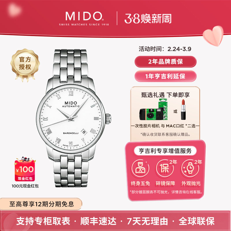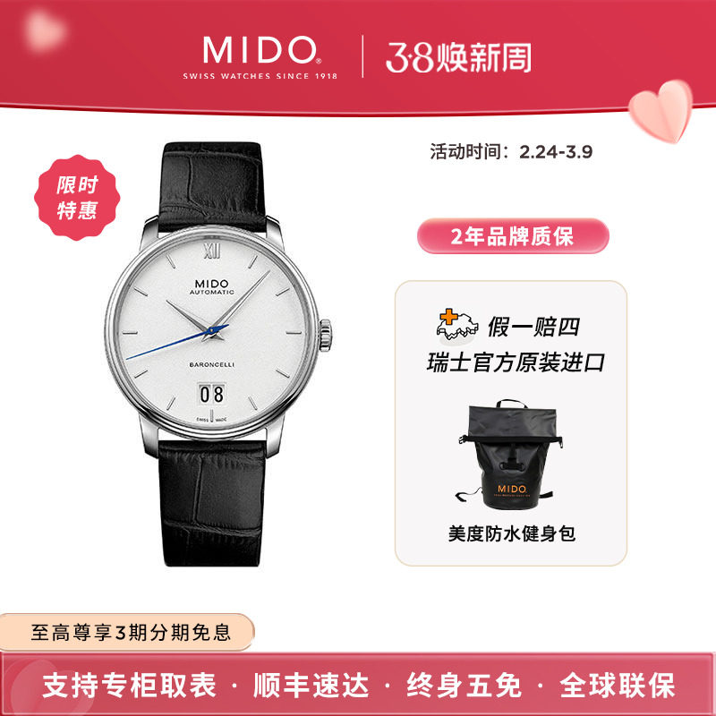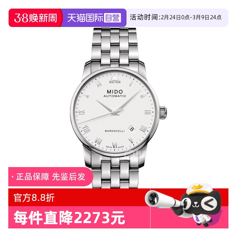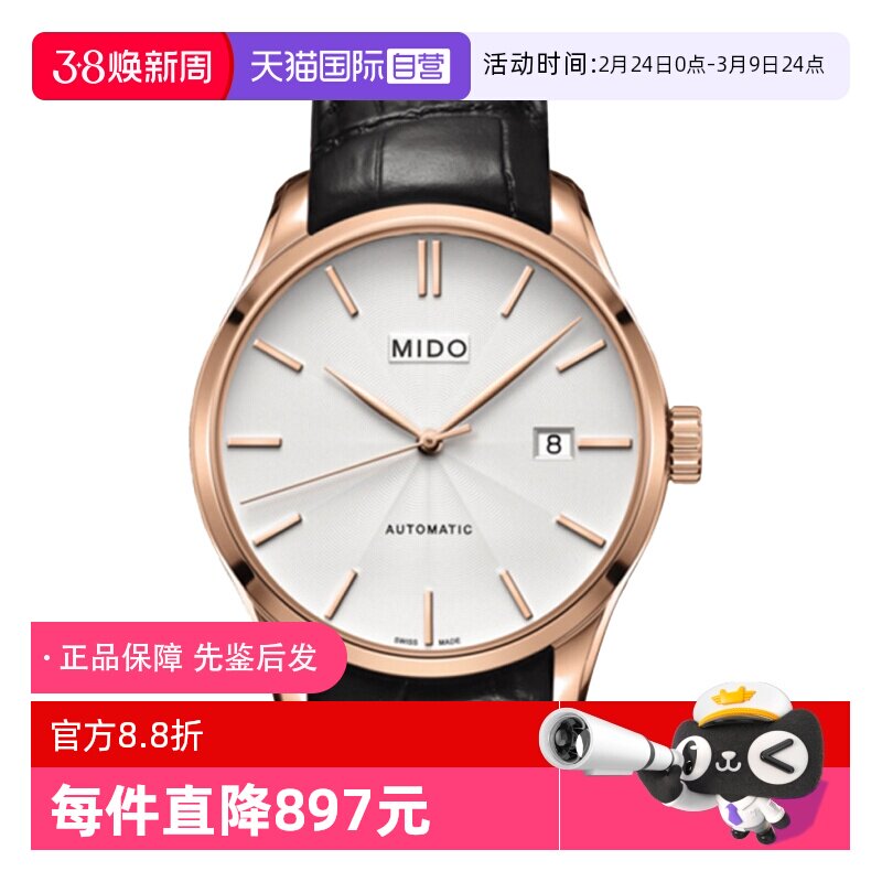 Mido美度贝伦赛丽系列全自动机械手表罗马数字刻度商务男表情侣表