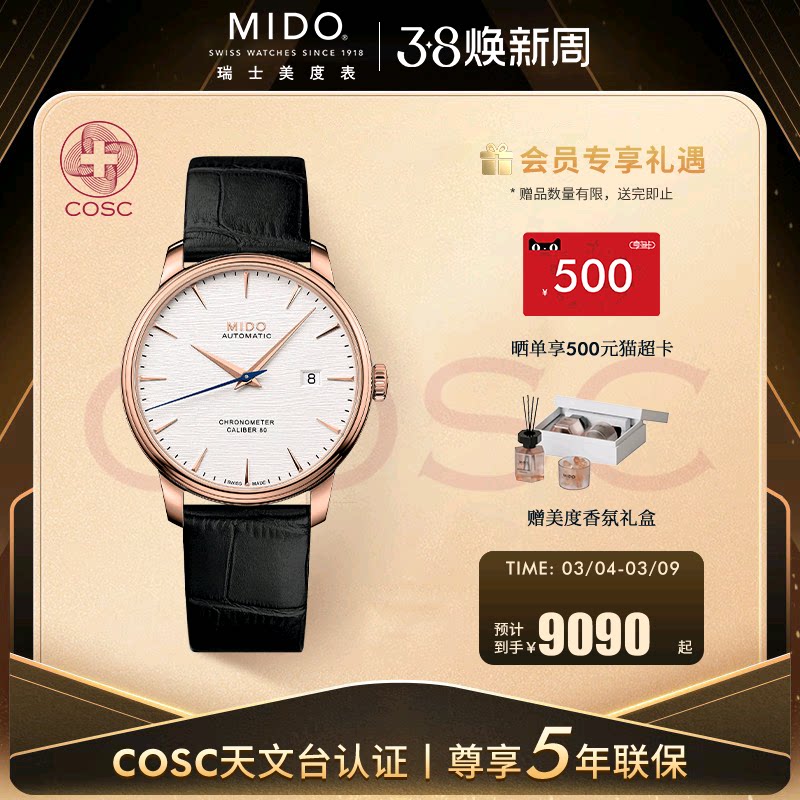 Mido美度贝伦赛丽系列纪念日限量2020枚大日历长动能机械男士腕表