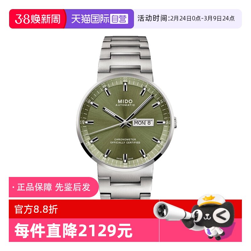 【自营】中古全新未使用美度指挥官系列男表机械手表绿盘夜光手表