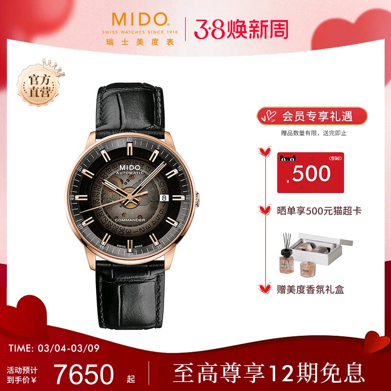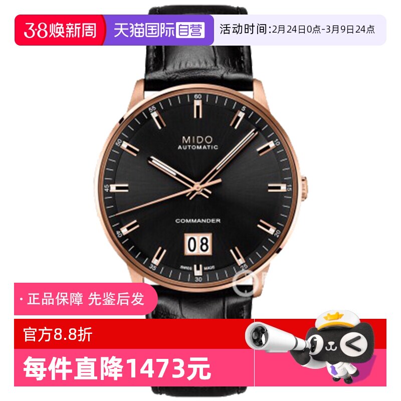 正品瑞士Mido美度指挥官男表自动机械镂空手表M021.407.37.411.00