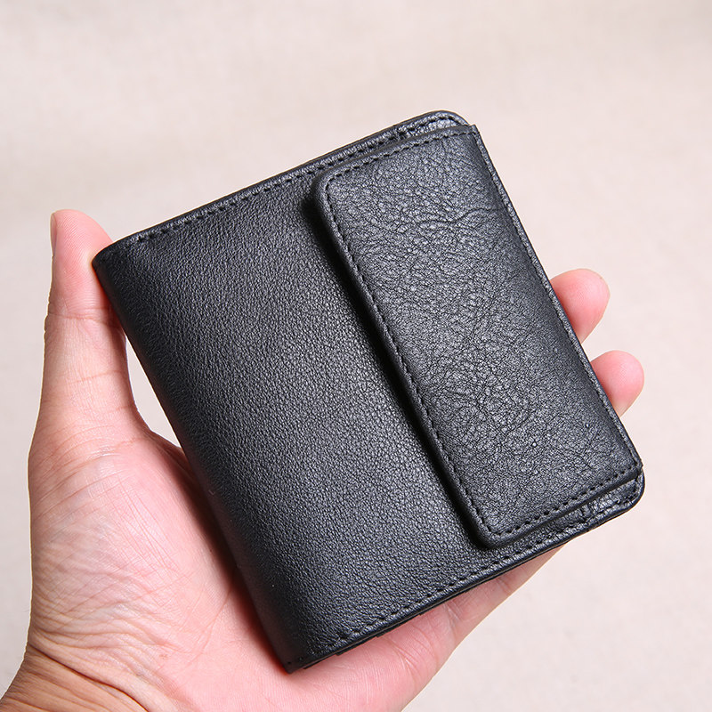 手工男士薄款钱包 牛皮超薄零钱包简约 迷你短款皮夹横款小钱包
