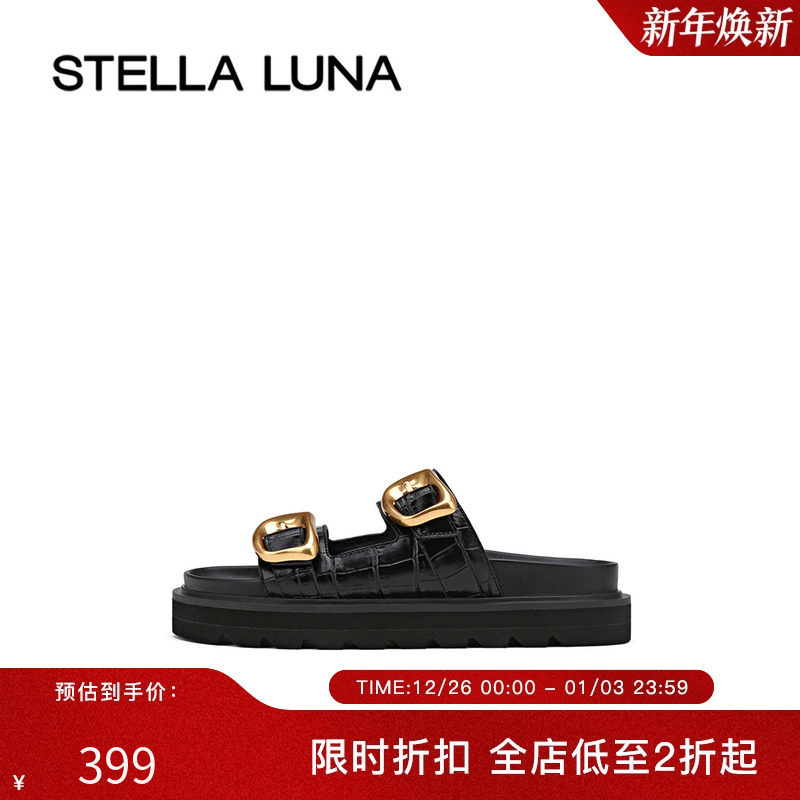STELLA LUNA女鞋官方时尚夏季拖鞋舒适个性外穿厚底平底凉拖鞋