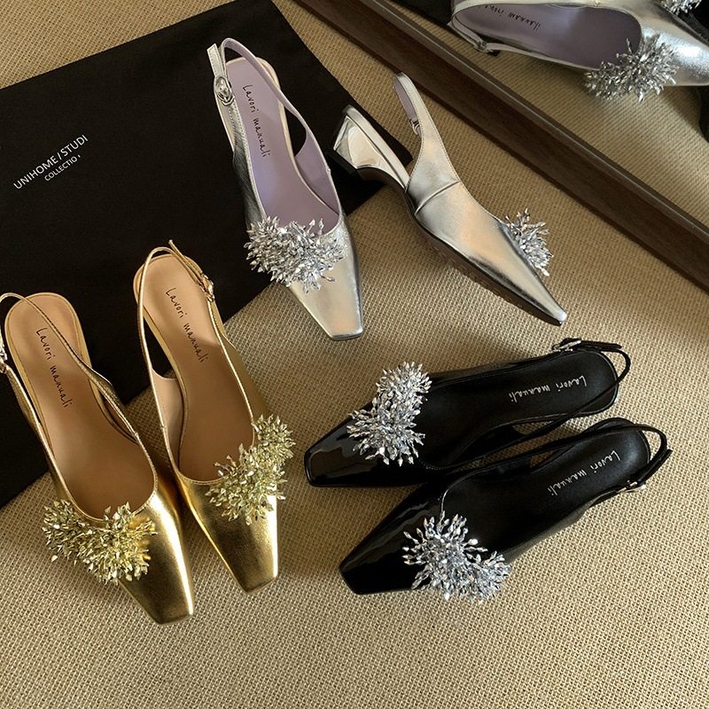 - 尖头高跟鞋单鞋一字扣