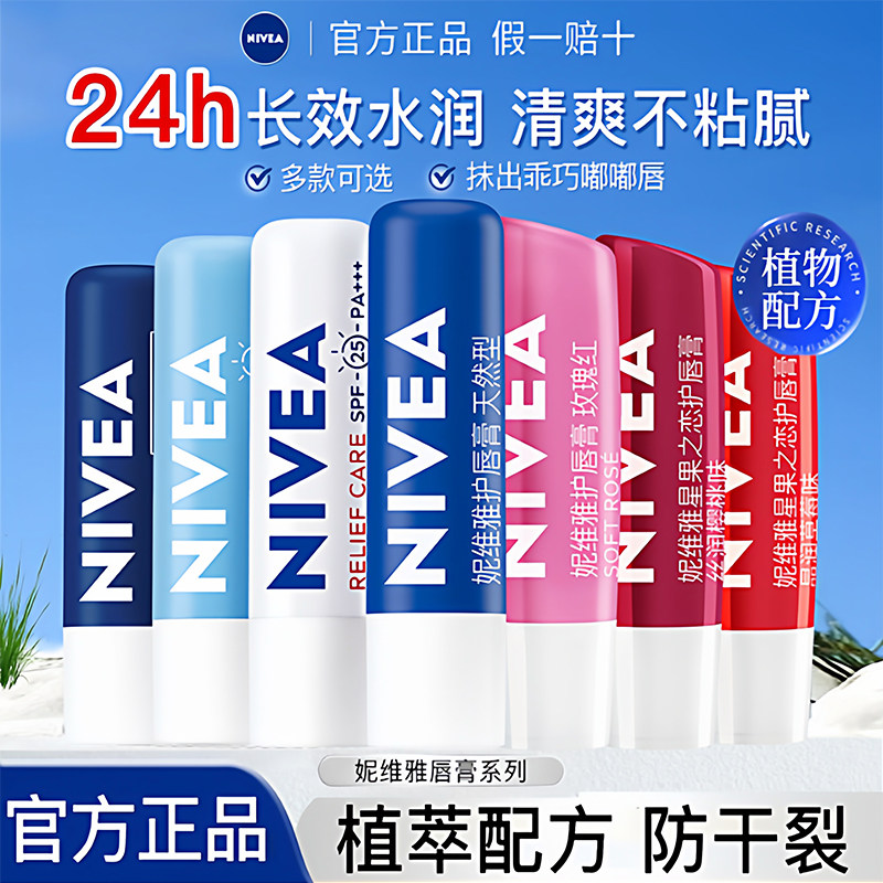 妮维雅润唇膏保湿滋润补水男女士自然防干裂无色学生口红打底淡彩