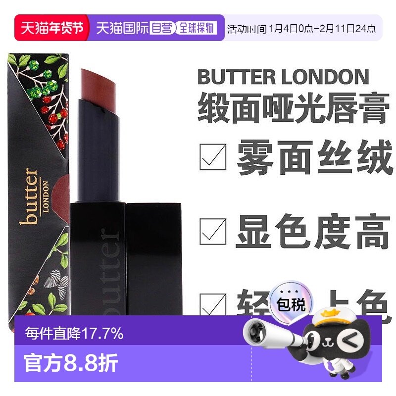 美国直邮butter LONDON女士奢华缎面哑光口红滋润保湿唇膏2.正品