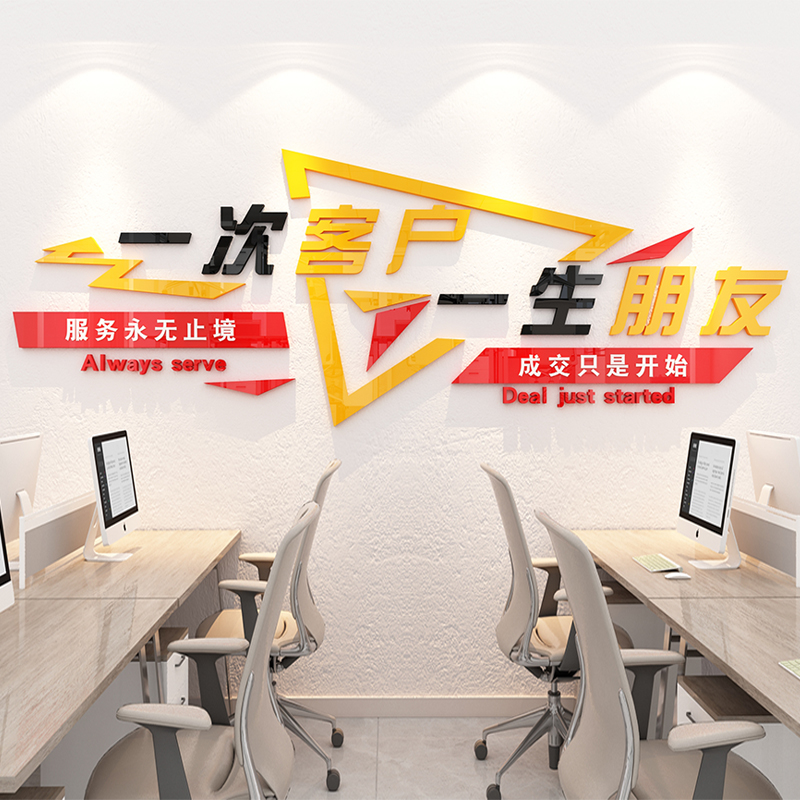 励志墙贴标语客户3d亚克力装饰会议办公室公司企业文化墙定制贴纸