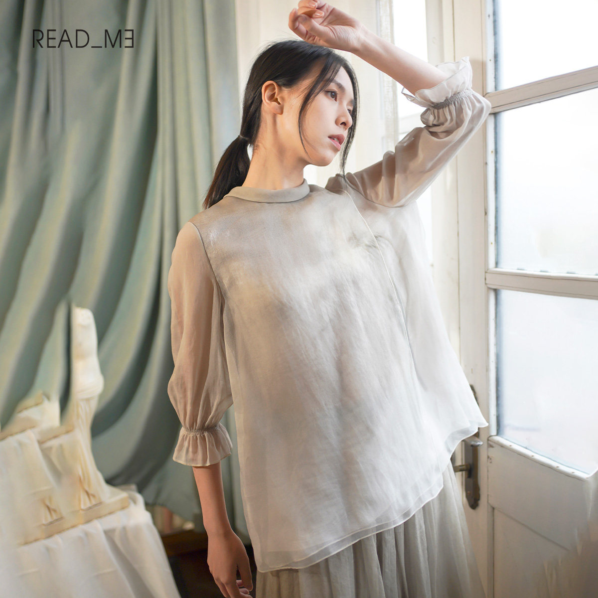 - 女式桑蚕丝长袖上衣
