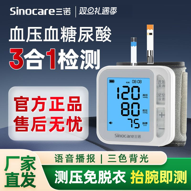 三诺血糖血压尿酸一体机三高检测仪老人家用双功能测试仪试纸国补