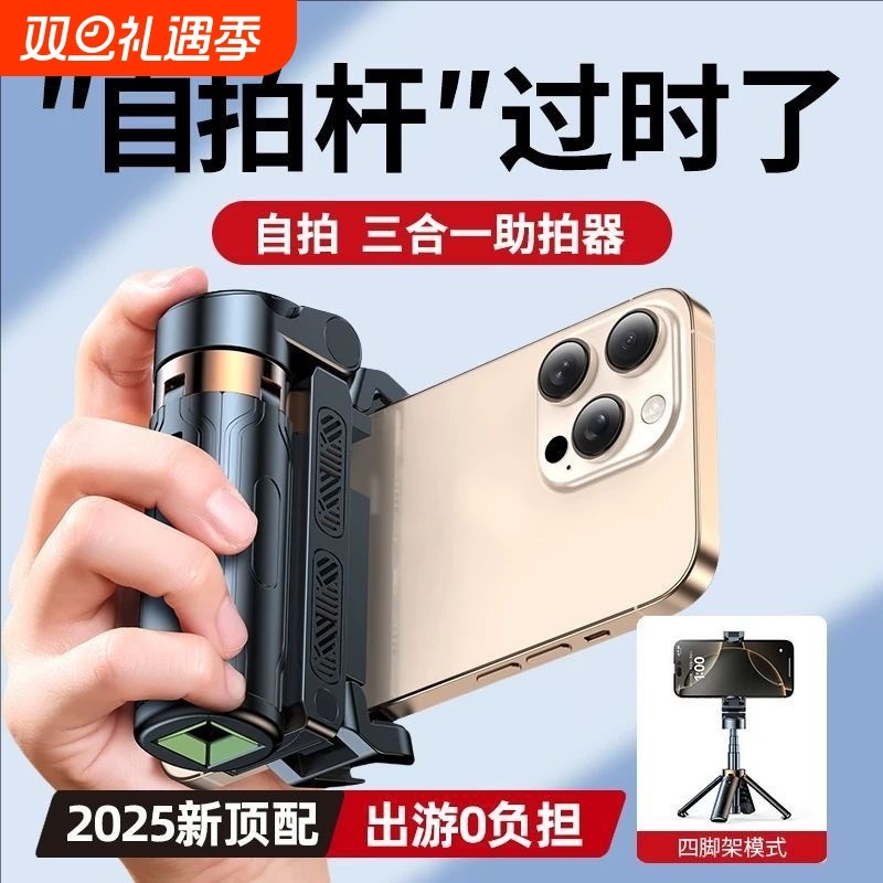 迷你自拍杆2025新款落地三脚架旅游便携式一个人拍照神器手机支架拍摄360度旋转手持防抖蓝牙vlog演唱会专用