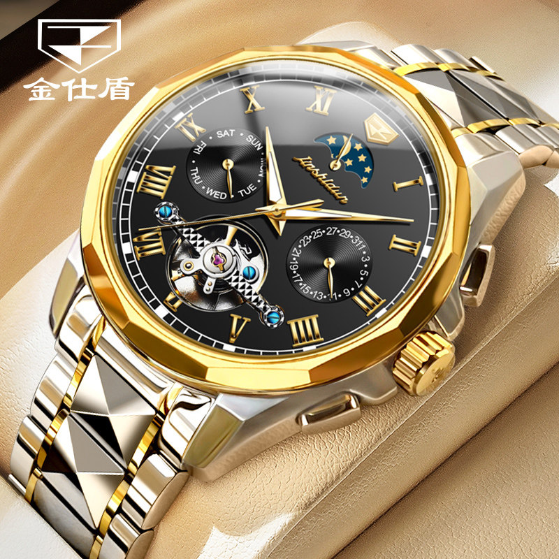 瑞士金仕盾品牌男士手表时尚陀飞轮全自动机械表夜光防水手表男款