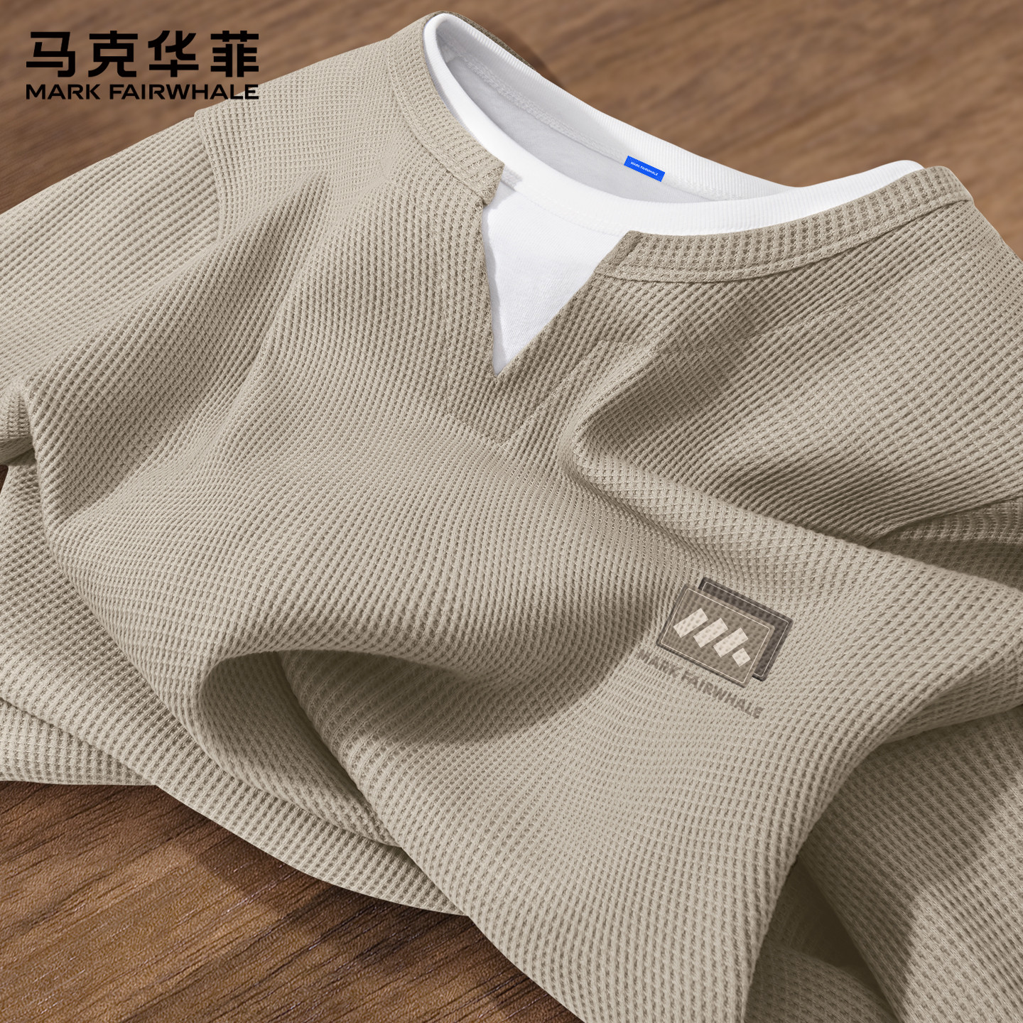 马克华菲长袖t恤男华夫格运动打底衫男款2026新款春季男士上衣潮X