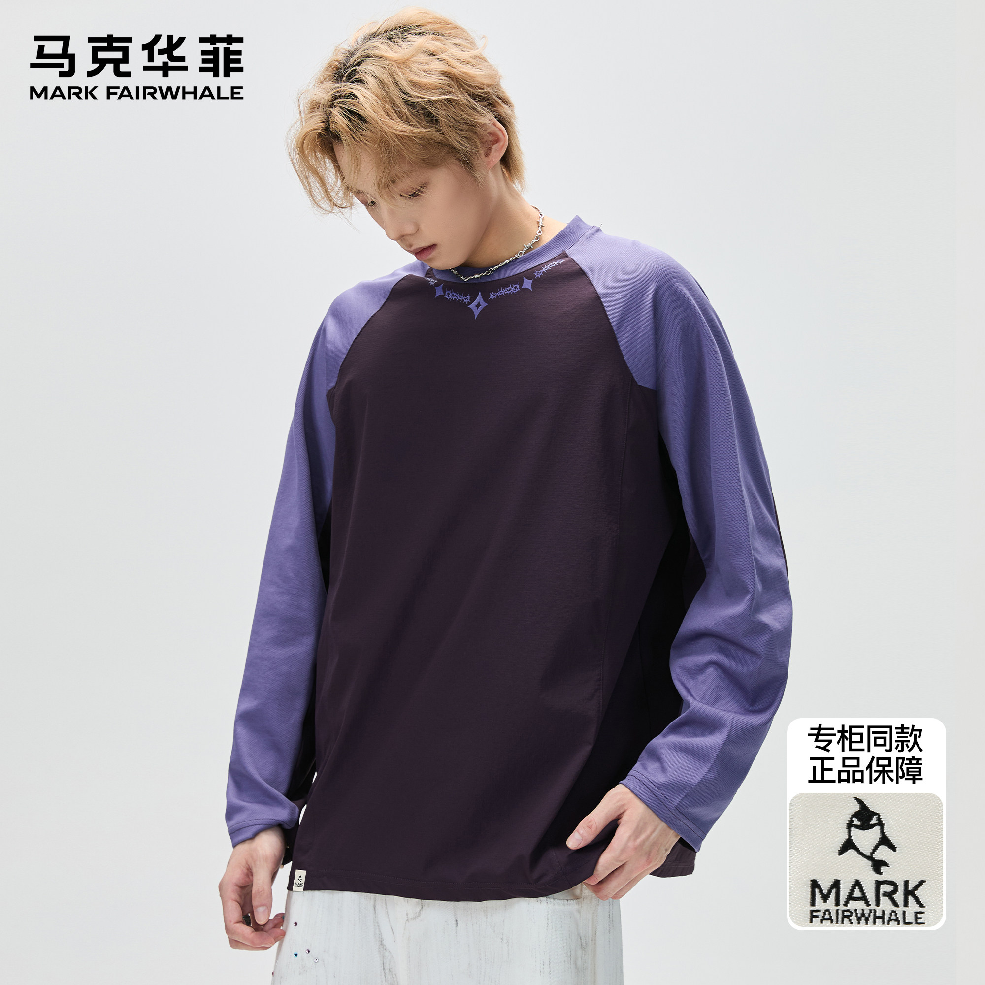 马克华菲长袖t恤男春秋季2026新款上衣男款美式拼接撞色男士衣服X
