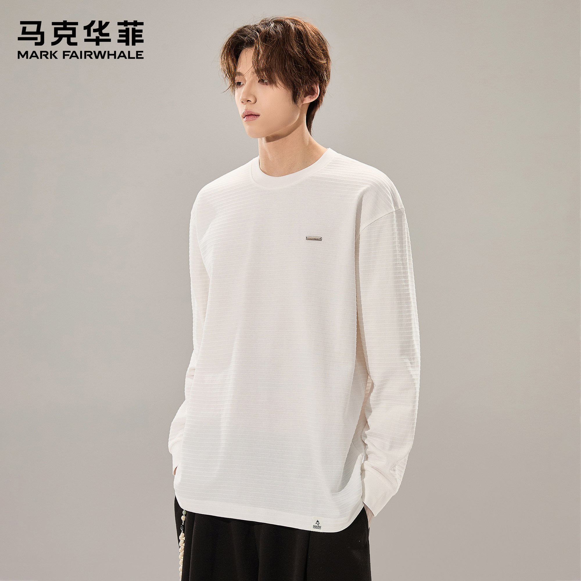 马克华菲男士长袖t恤纯棉2025新款秋季白色内搭打底衫男士上衣X
