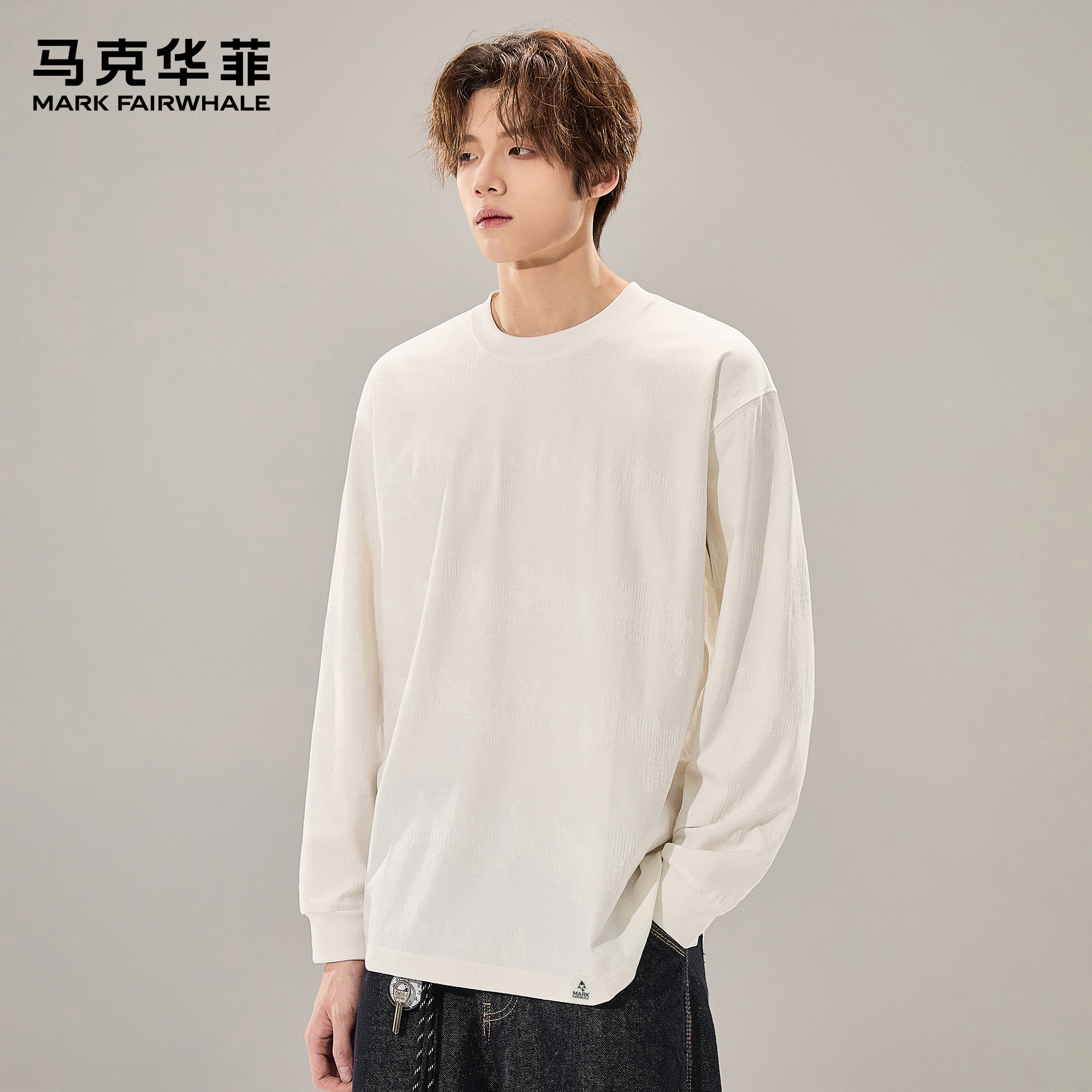 马克华菲长袖t恤男士秋季2025新款纯棉内搭上衣男白色打底衫男款X