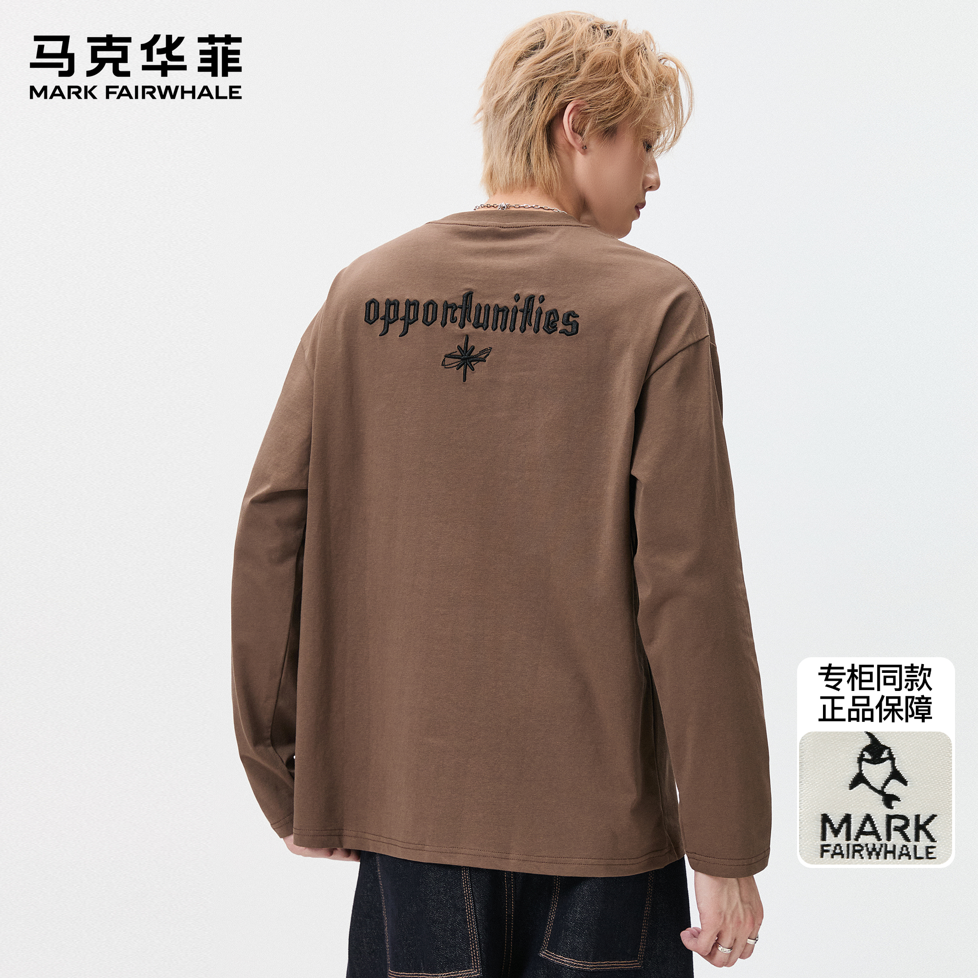 马克华菲长袖t恤男秋季新款潮牌ins美式刺绣青少年圆领宽松打底衫