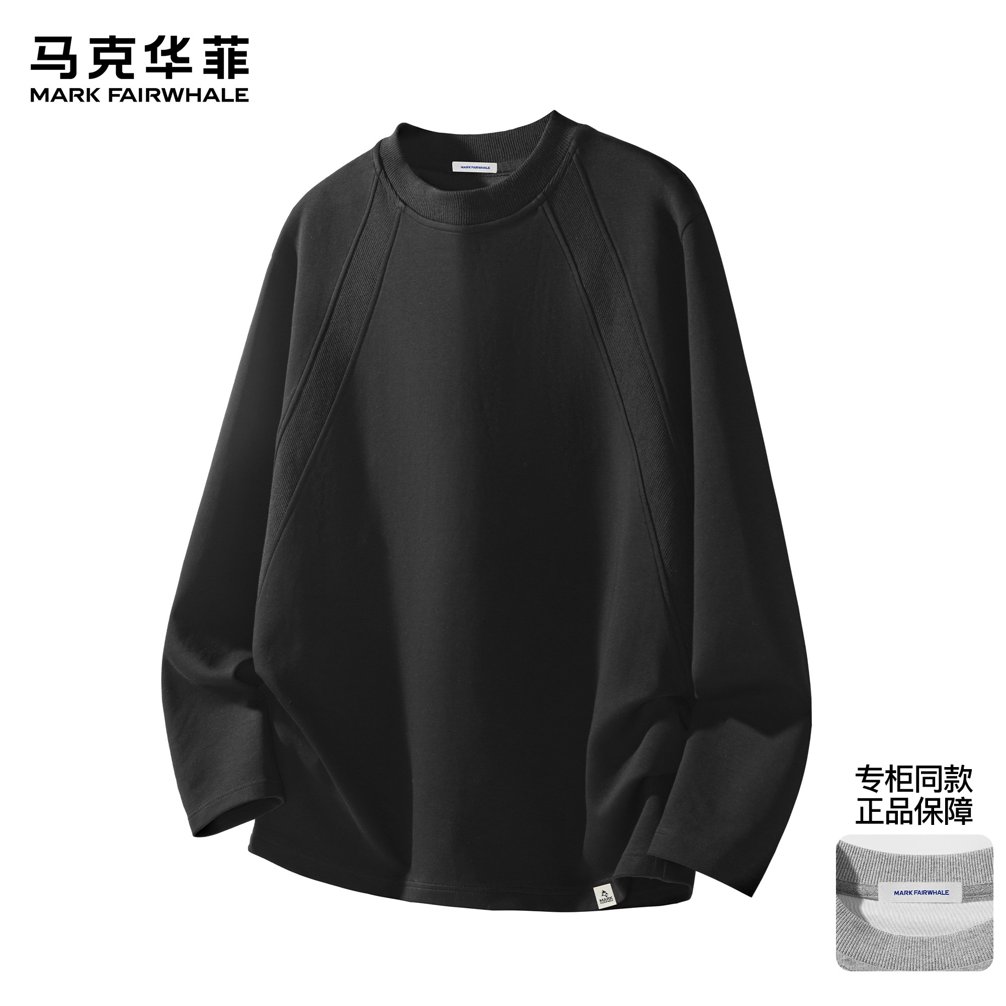 马克华菲长袖t恤男秋季新款潮牌重磅美式解构插肩袖宽松圆领卫衣
