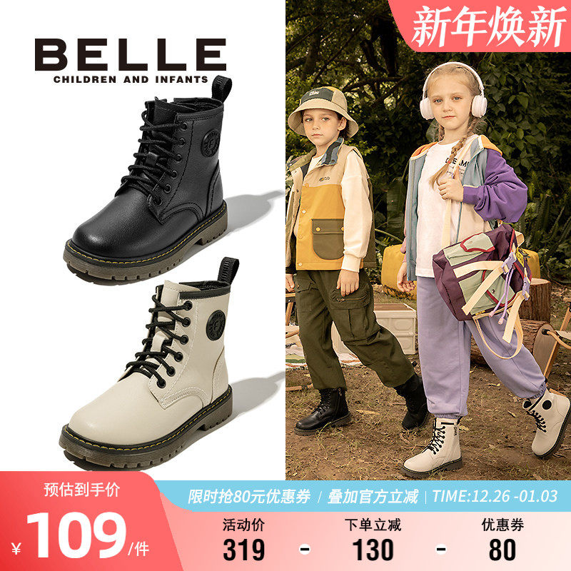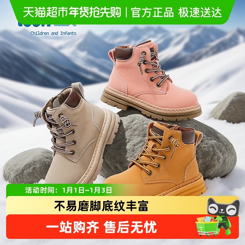 百丽童鞋儿童马丁靴女童短靴冬季小女孩洋气宝宝加绒保暖男童皮靴