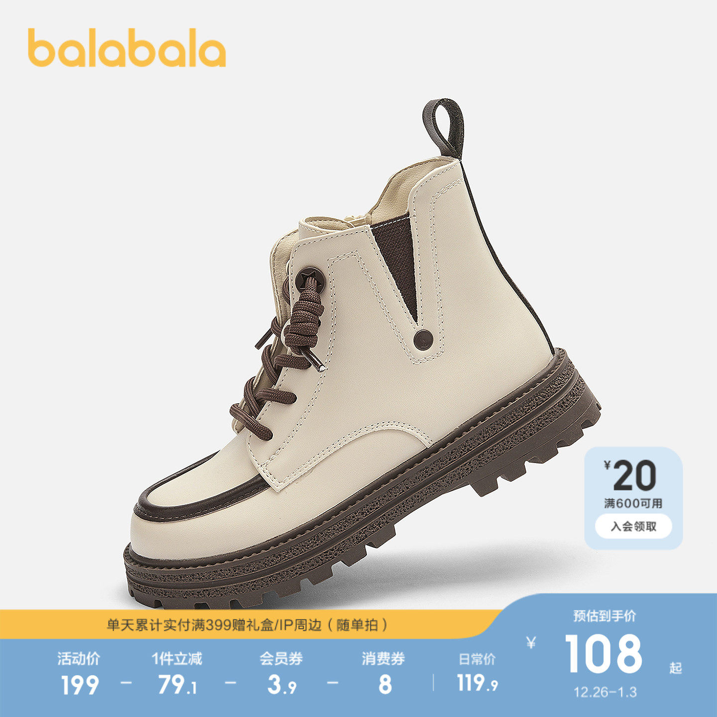 巴拉巴拉童鞋儿童马丁靴女童撞色复古靴子拉链款秋冬鞋子时尚百搭