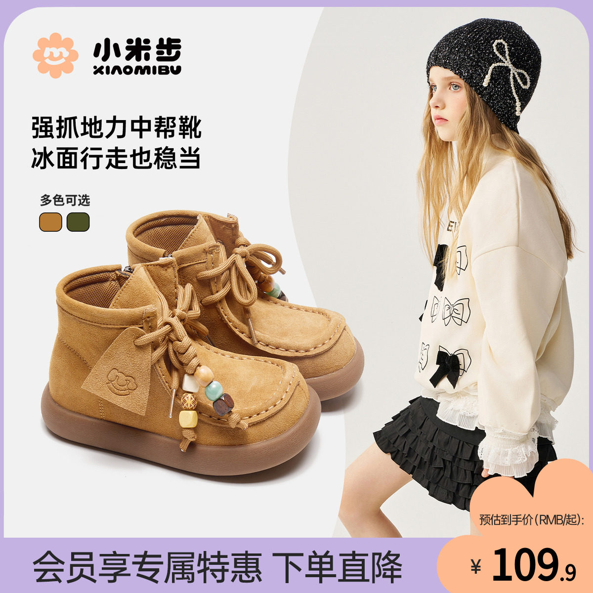 小米步女童靴子2025冬季新款儿童马丁靴女孩时尚大黄靴休闲短靴潮