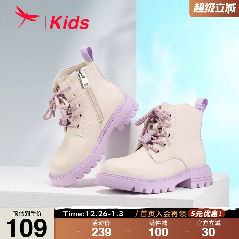 天美意儿童马丁靴女童短靴子冬季加绒雪地靴2025新款童靴中大童靴