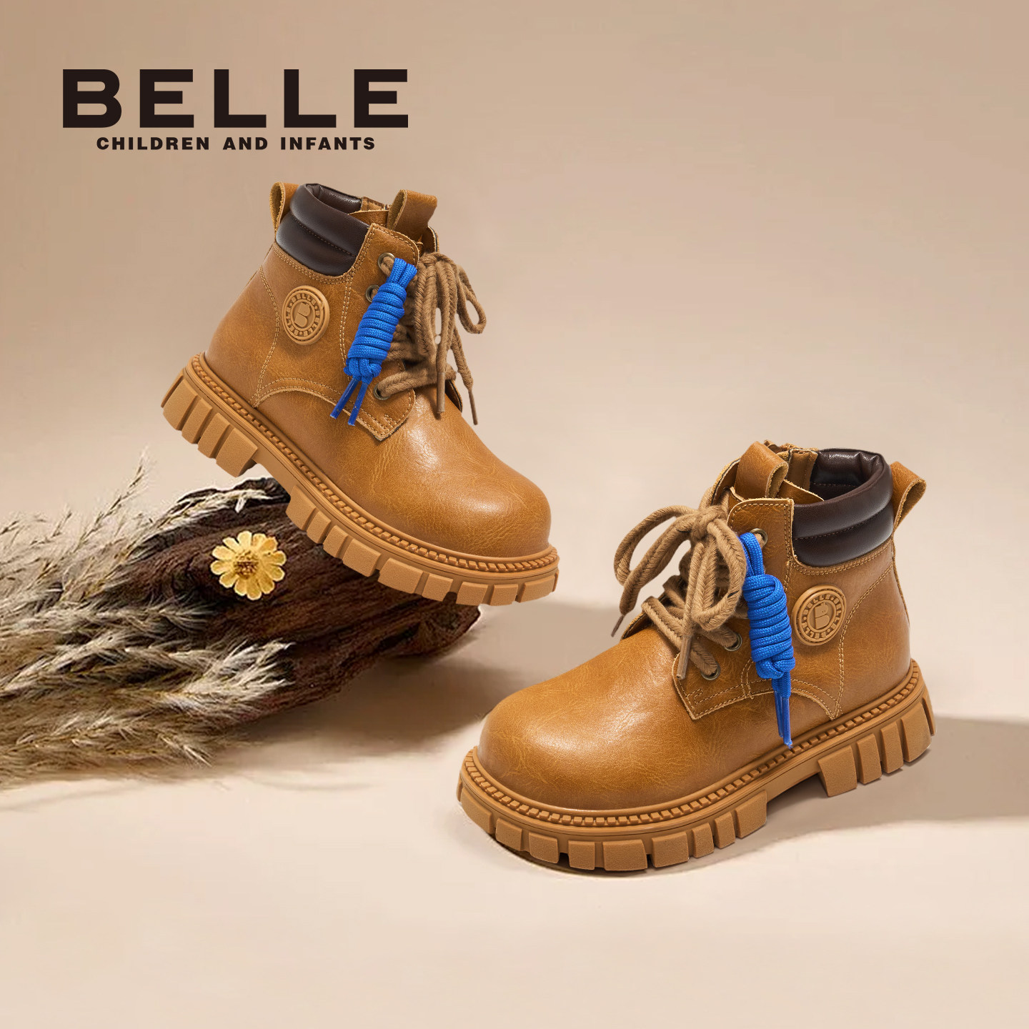 百丽童鞋儿童马丁靴女大童短靴子宝宝皮靴公主2025秋冬新款男小童