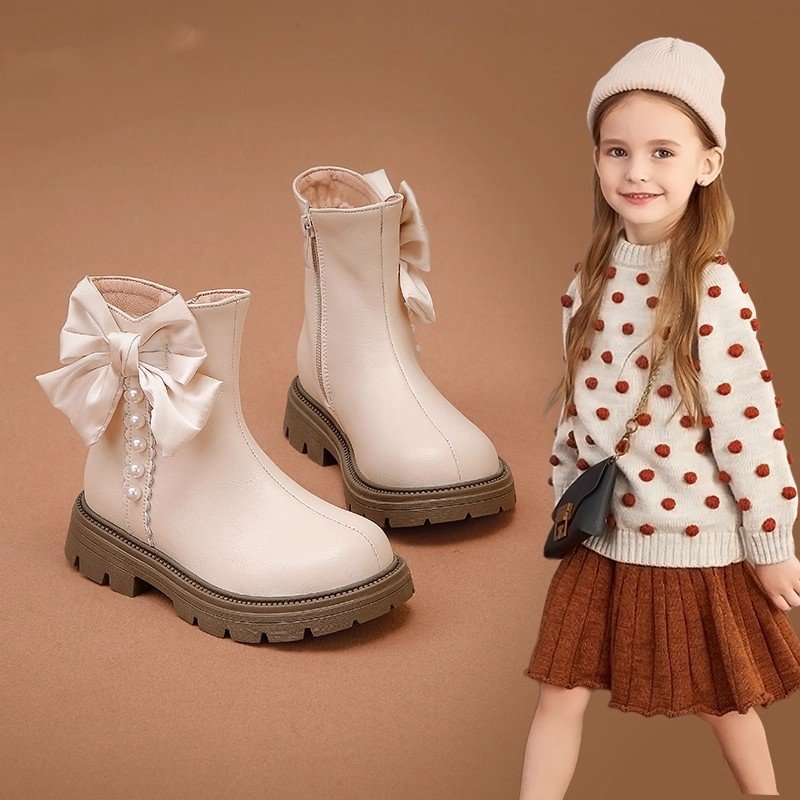 书萌女童皮靴小女孩公主靴2025新款儿童马丁靴女宝宝加绒保暖棉靴