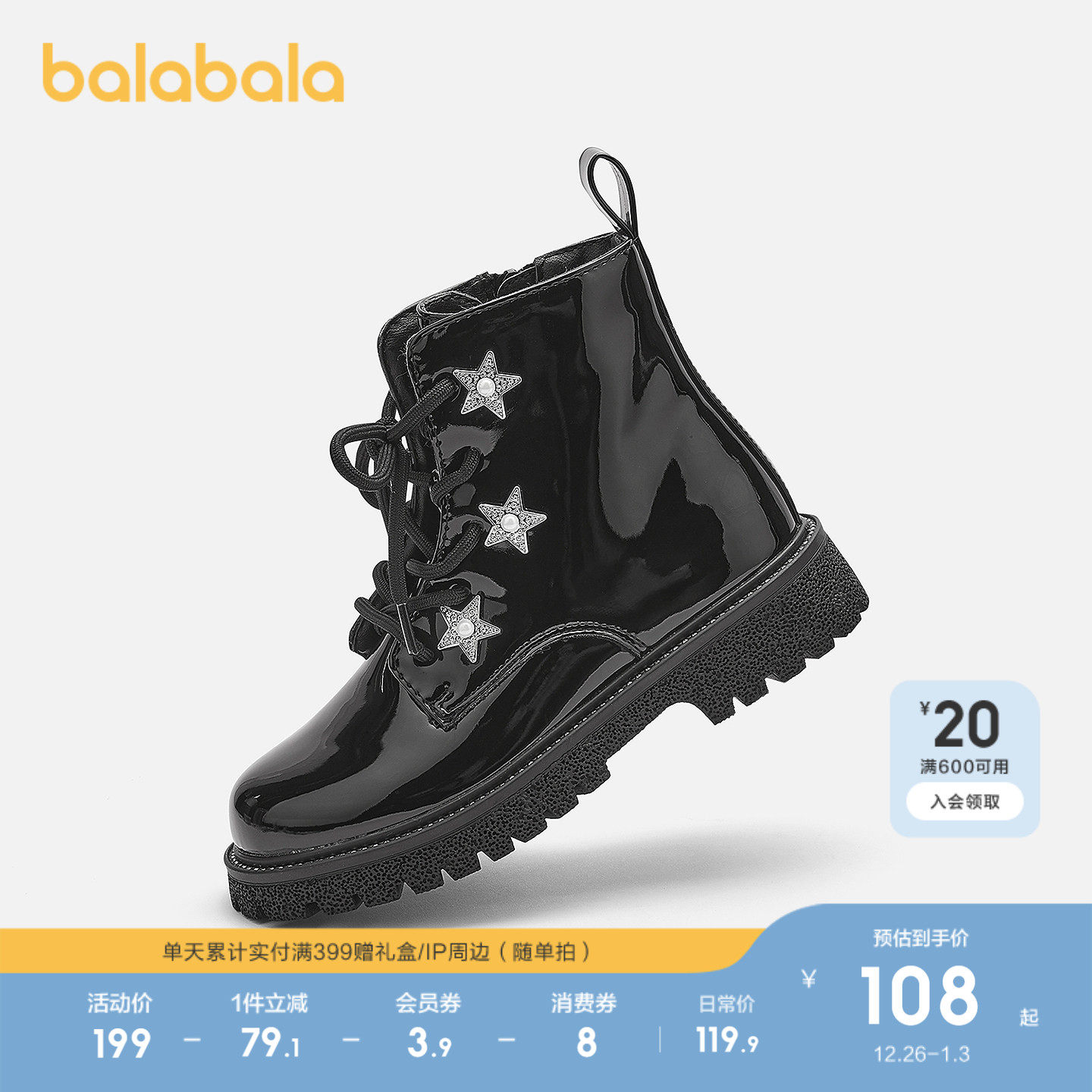 巴拉巴拉童鞋儿童马丁靴女童亮面百搭黑色靴子拉链款秋冬鞋子小童