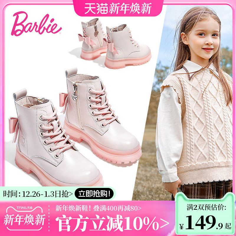 芭比童鞋儿童马丁靴女童靴子加绒2025新款秋冬短靴公主靴冬季棉靴