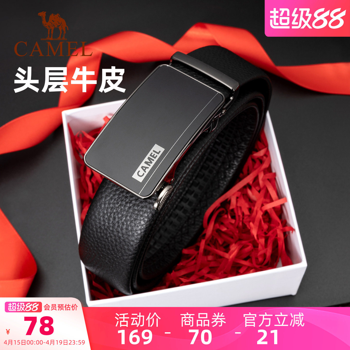 骆驼皮带头层牛皮男士送男友爸爸生日情人节礼物自动扣真皮裤腰带
