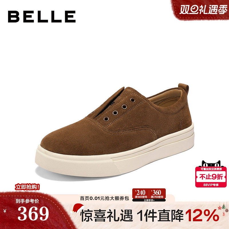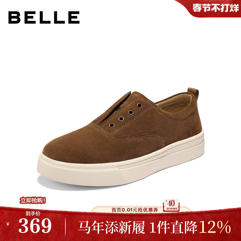 百丽男鞋一脚蹬套脚休闲板鞋男士25新款冬季舒适懒人鞋子A2228DM5