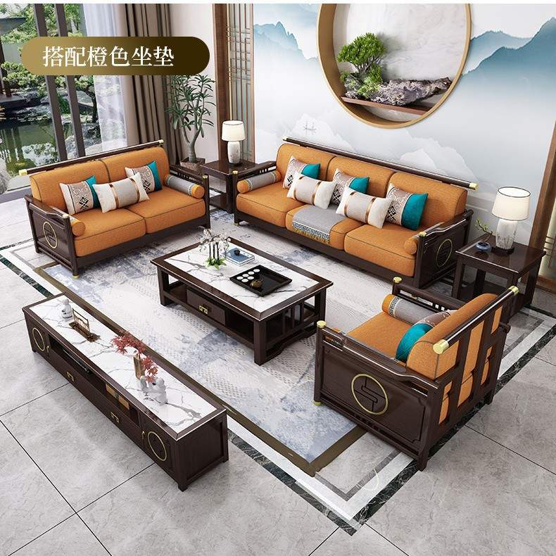 新中式金丝胡桃木实木沙发组合大小户型冬夏两用客厅沙发组合套装